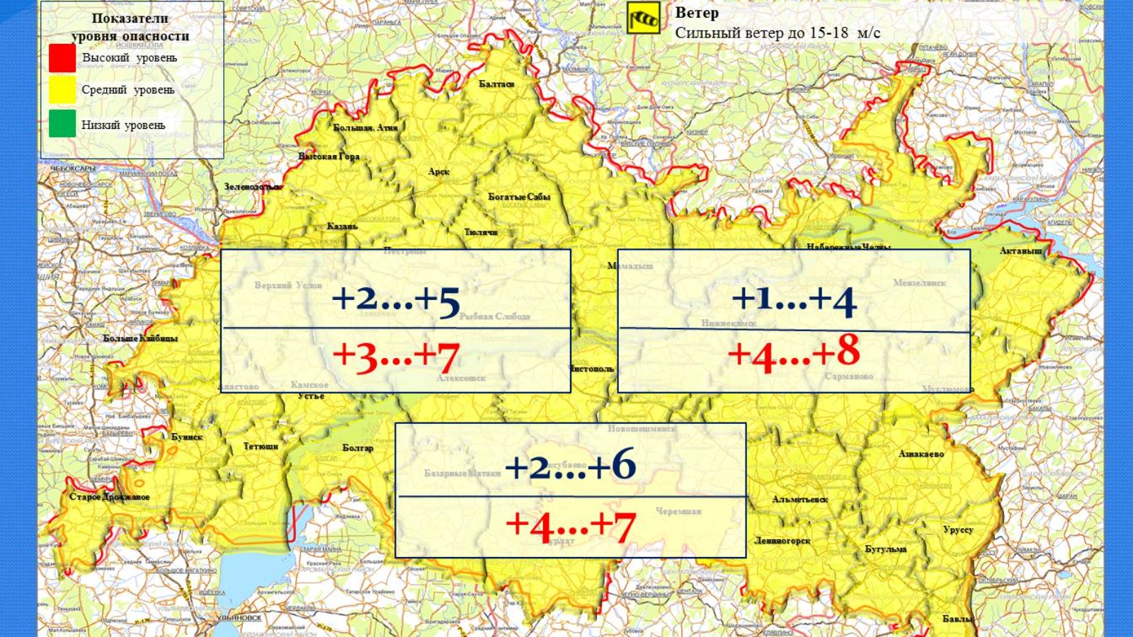 Ночью и утром 9 ноября 2021 года на территории Республики Татарстан и в Казани местами ожидается сильный юго-западный ветер порывами до 15-18 м/с.