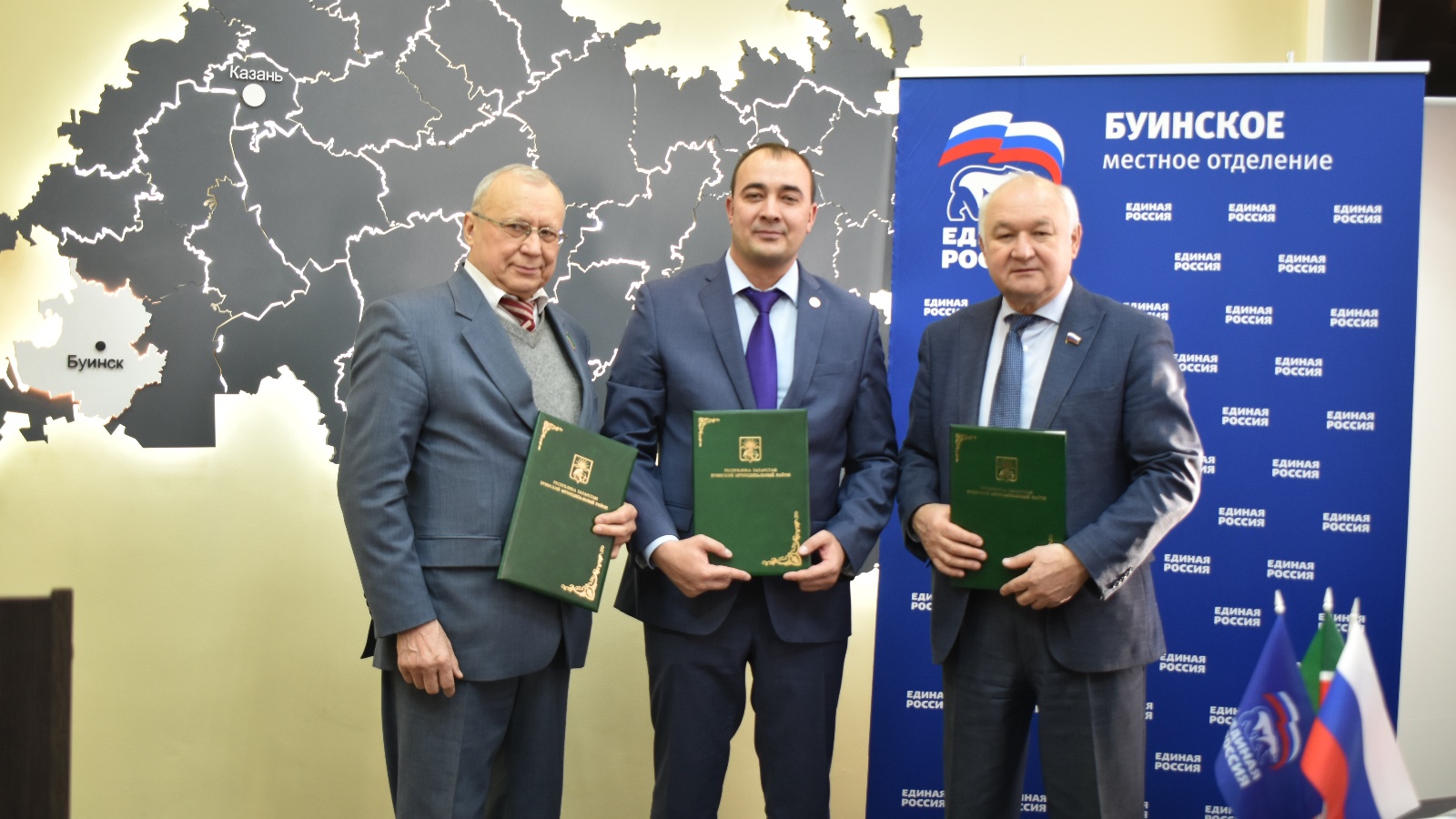 Сегодня состоялось подписание соглашения о взаимодействии депутатов трех уровней фракций «ЕДИНАЯ РОССИЯ» в Государственной Думе Российской Федерации, Государственном Совете Республики Татарстан и представительном органе Буинского муниципального района Республики Татарстан по вопросам социально-экономического и культурного развития.