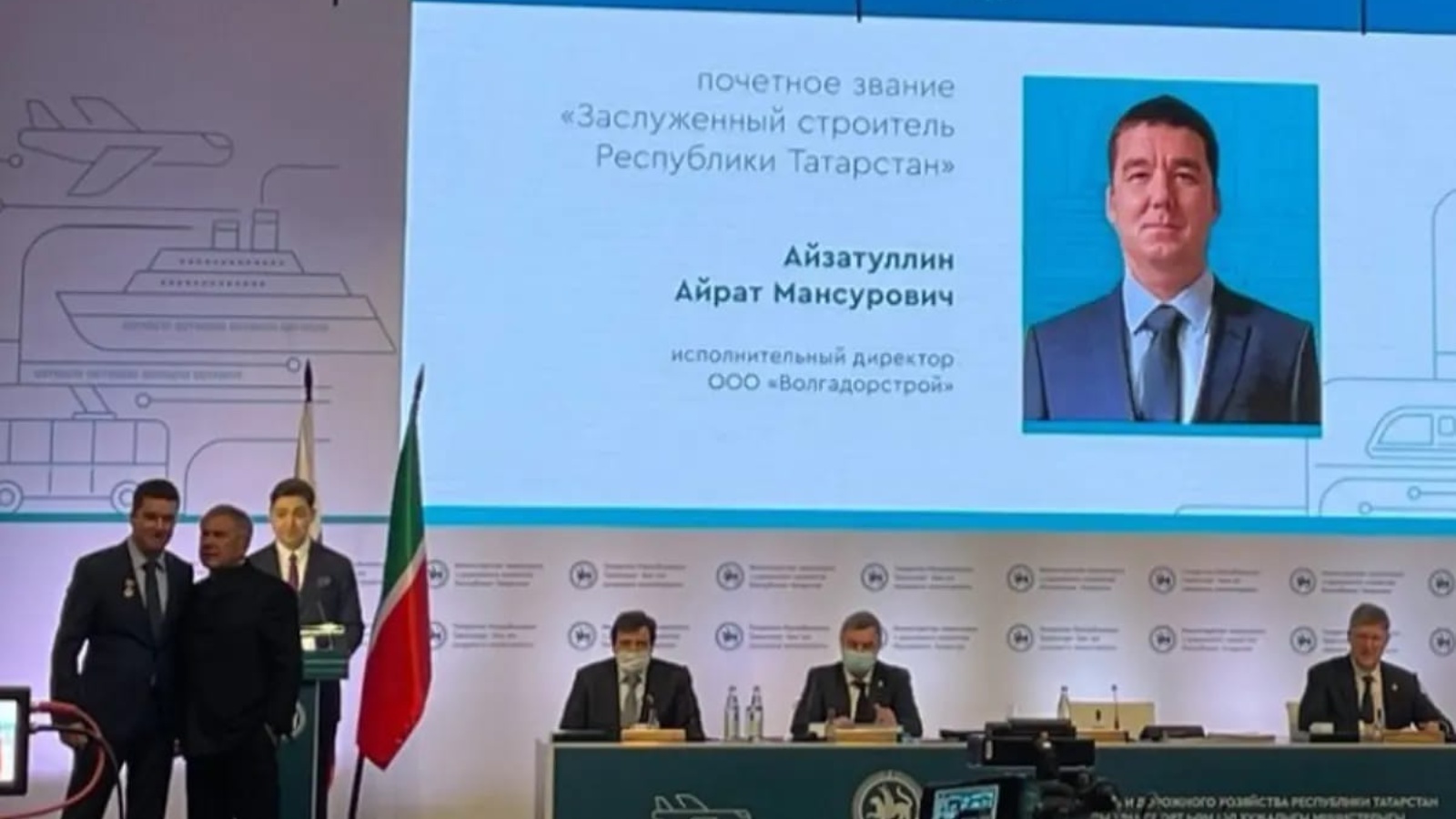 Так Указом Президента РТ почётное звание «Заслуженный строитель Республики Татарстан» присвоено Айзатуллину Айрату Мансуровичу – исполнительному директору ООО «Волгадорстрой».