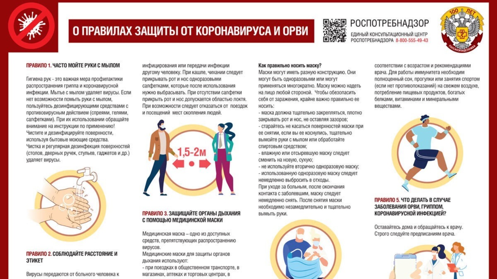 Правило 5. Что делать в случае заболевания ОРВИ, гриппом, коронавирусной инфекцией? Оставайтесь дома и обращайтесь к врачу.