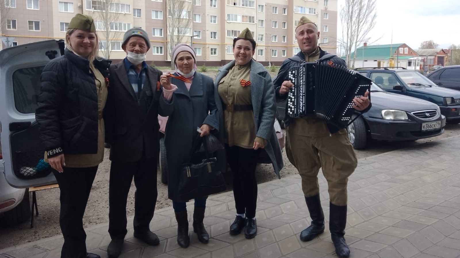 Под звуки гармони и исполнение всем известных песен "День Победы", "Смуглянка", "Катюша", "Җиңү килде" работники культуры Центра культурного развития вышли на улицы города, чтобы вручить горожанам главный символ Дня Победы.