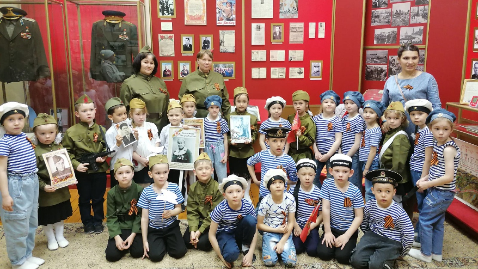 В канун знаменательной даты в краеведческом музее в зале боевой славы воспитанники МБДОУ "Йолдызкай" провели литературно- историческое мероприятие "Не смолкнет слава тех великих лет". Зрителями были воспитанники МБДОУ «Солнышко».