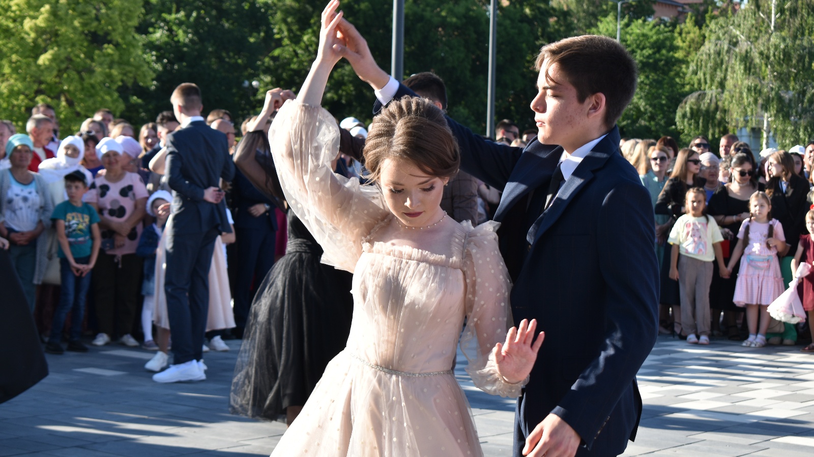 Юноши и девушки с аттестатами в руках собрались в Центральном парке. Заместитель главы района Ильдар Еремеев тепло поздравил виновников торжества и вручил медали 35 выпускникам. Также были награждены победители различных конкурсов, олимпиад, соревнований. А потом выпускники всех школ кружились в завершающем школьном вальсе.