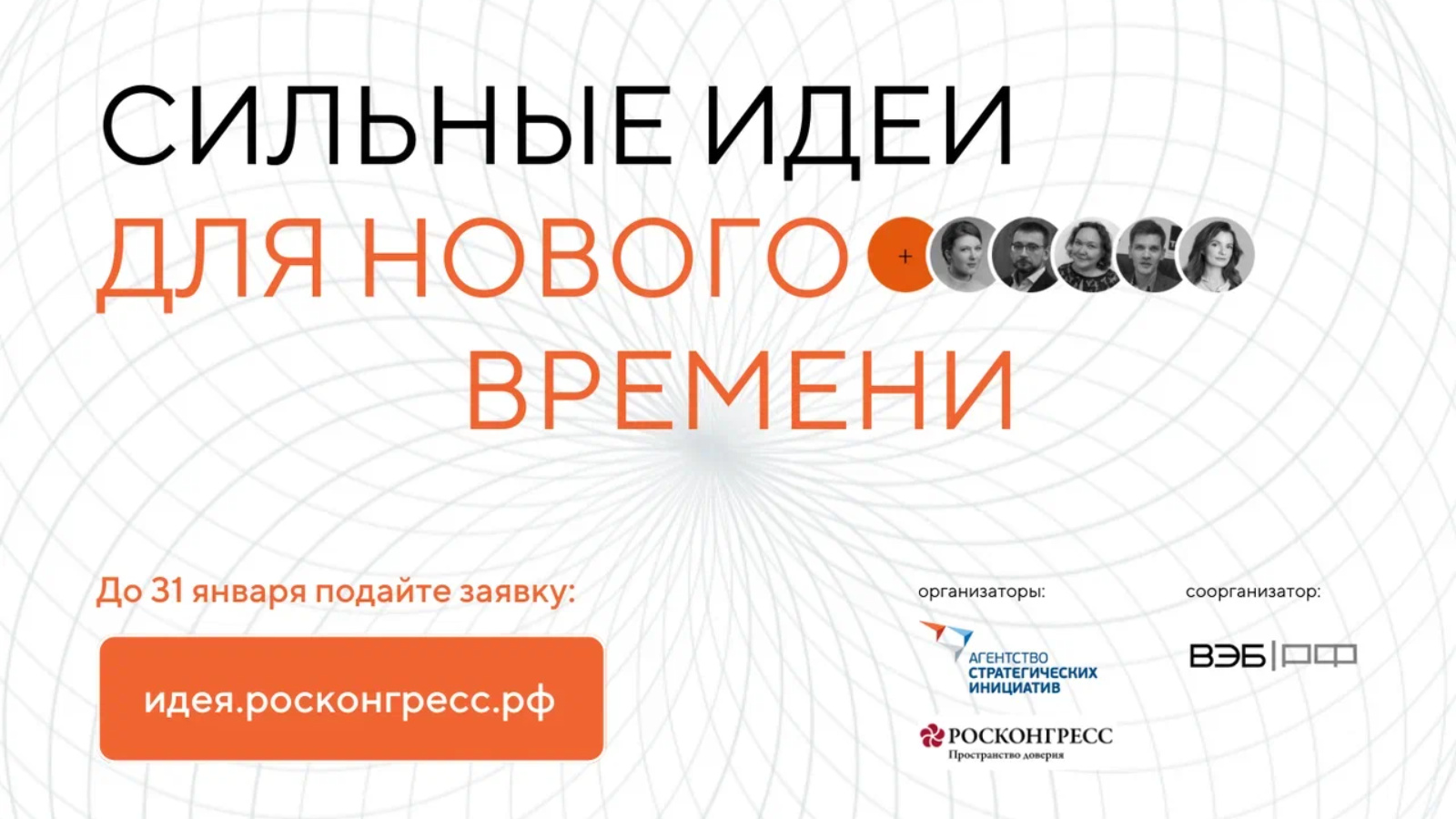 Открыт прием заявок на форум «Сильные идеи для нового времени», который будет проходить уже в четвертый раз. Организаторы форума – Агентство стратегических инициатив и Фонд Росконгресс, соорганизатор – ВЭБ.РФ. Идею можно подать на платформе идея.росконгресс.рф до 31 января 2024 года. Потом эксперты отберут топ-1000 и топ-100 идей, лучшие предложения в марте представят руководству страны.