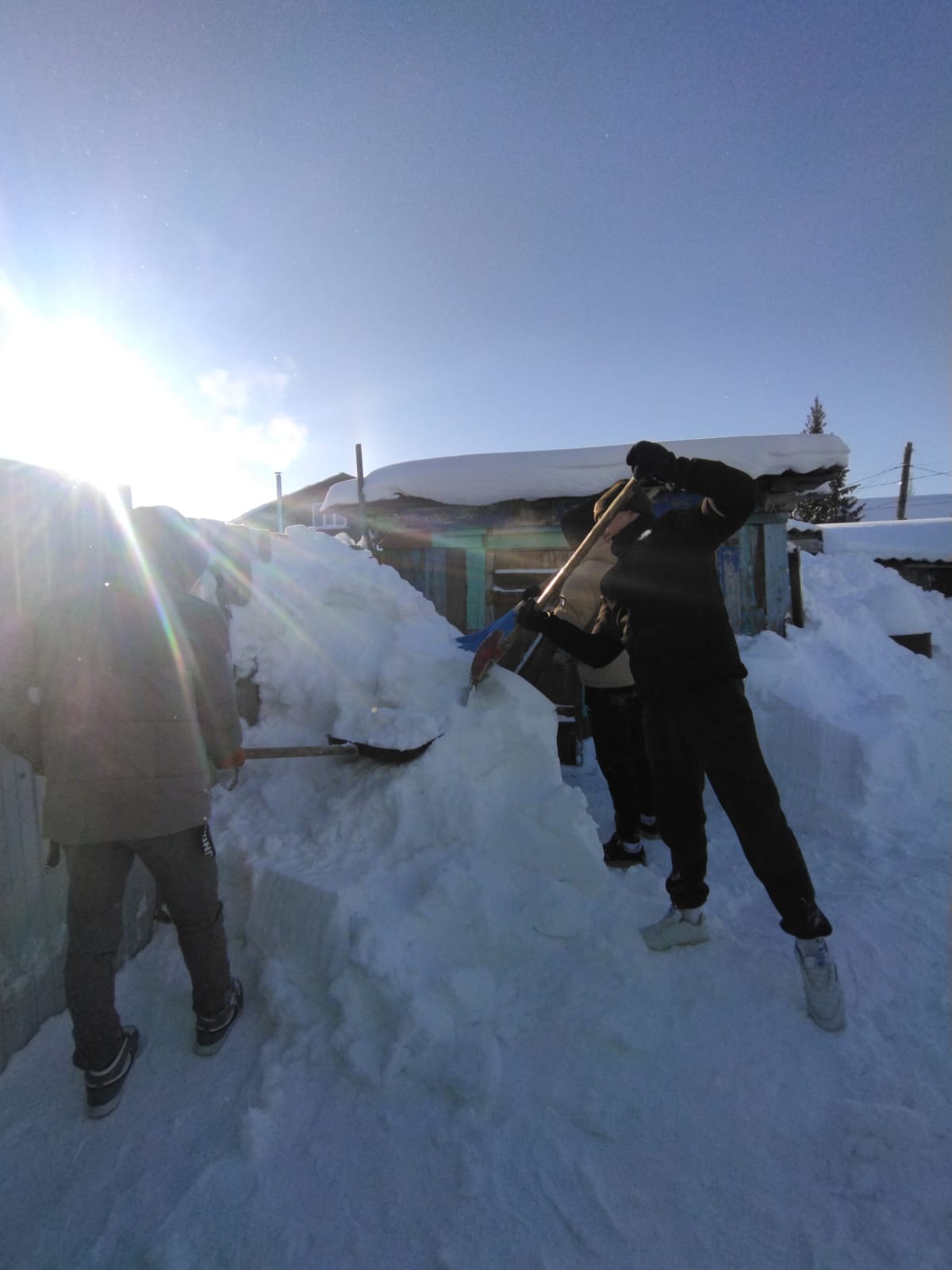 Волонтеры быстро отреагировали на просьбу и выдвинулись на помощь. За короткое время они вычистили снег со двора, расчистив широкие дорожки.
