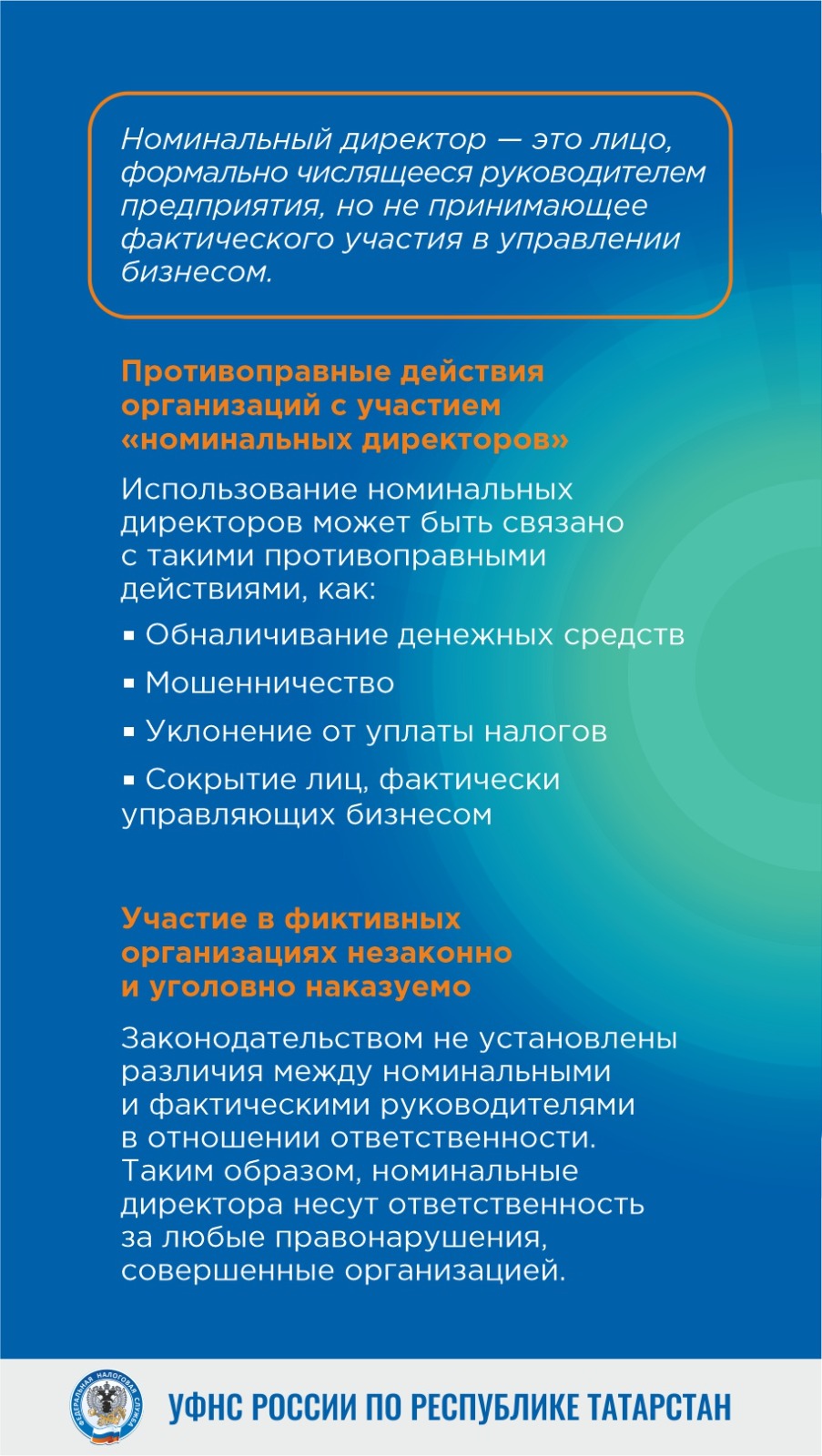 Напомним, что номинальный директор — это лицо, формально числящееся руководителем предприятия, но не принимающее фактического участия в управлении бизнесом. Законодательством не установлены различия между номинальными и фактическими руководителями в отношении ответственности. Таким образом, номинальные директора несут ответственность за любые правонарушения, совершенные компанией.