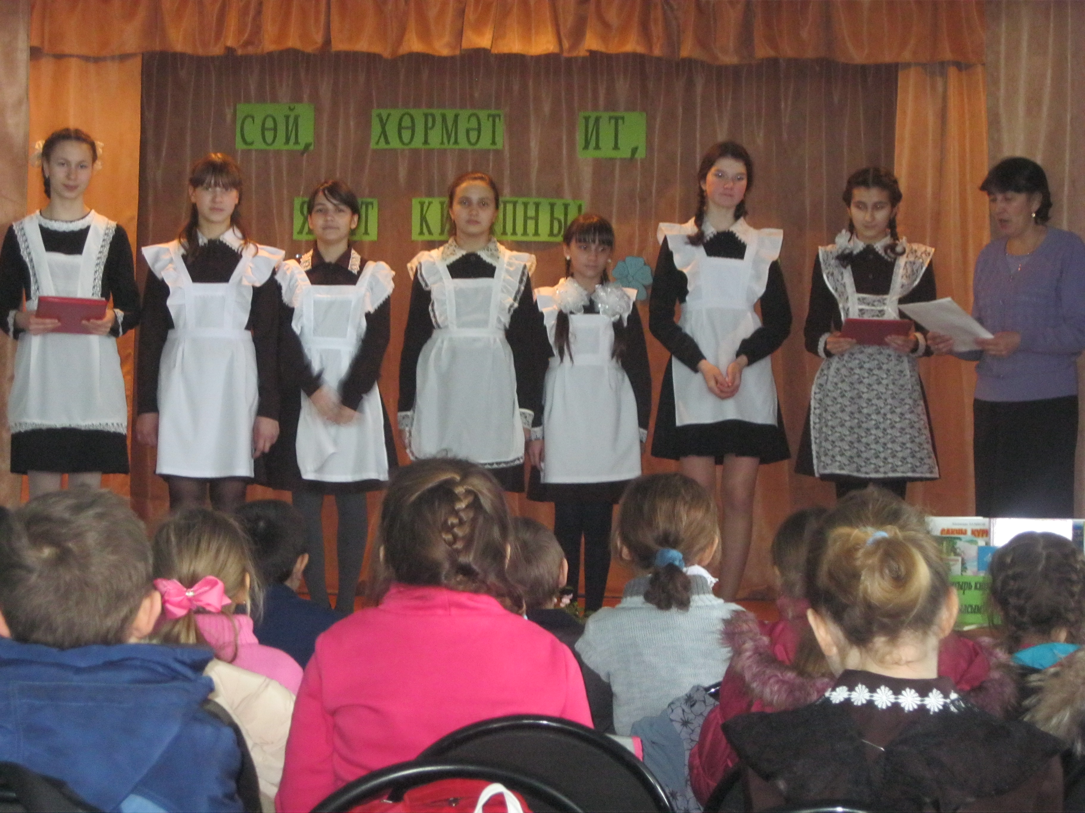 Ул “Сөй, хөрмәт ит, ярат китапны!” темасы астында узды. Бәйрәм берничә өлештән торды.Кичәнең беренче өлешендә 7-8нче сыйныфларның иң күп китап укучылары китап турында шигырьләр сөйләделәр. Икенче өлешендә иң күп китап укучылар әкиятләр иленнән килделәр. Алар арасында төрле әкият геройлары бар иде. Һәр әкият герое үзе турында шигырь сөйләде. Кичәне китапханәче Нургалиева Фәридә һәм 9нчы сыйныф укучылары Камалиева Лилия һәм Нургалиева Рәфия алып барды.