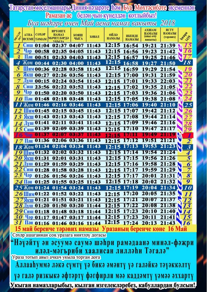 Ураза гаете Татарстанда 15 июнь көнне узачак.