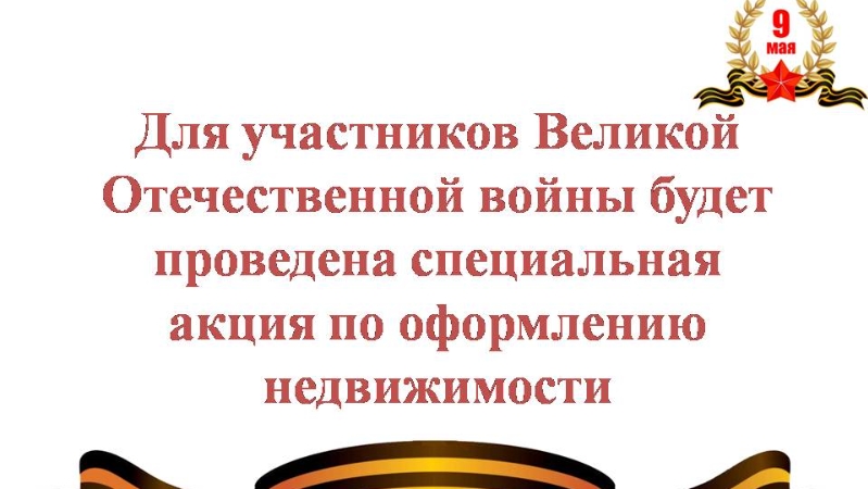 Игътибар! 29 апрельдән 24 майга кадәр кадастр эшләре базарында эшләүче оешмалар Бөек Ватан сугышында катнашучылар өчен Бөек Ватан сугышында Җиңүнең 74 еллыгына багышланган махсус акция уздыра.