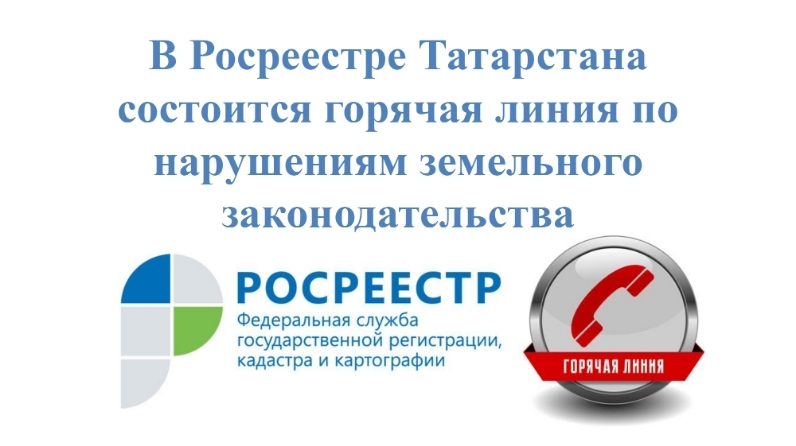 28 май көнне 8.00 дән 12.00 сәгатькә кадәр Татарстан Республикасы буенча Росреестр идарәсе җир законнарын бозу мәсьәләләре буенча «Бердәм кайнар линия көне» үткәрә.