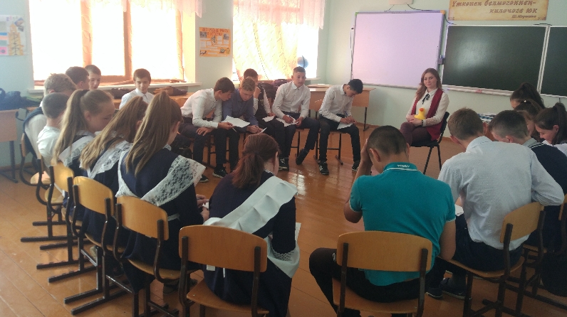 Буа муниципаль районының " Гармония" халыкка социаль хезмәт күрсәтү комплекслы үзәге психологы Князева К. С. «Тормыш бер» темасына, 8-9 сыйныф укучылары белән беренче номерлы социаль участокта суицидаль тәртипне кисәтүгә юнәлдерелгән тренинг үткәрде.