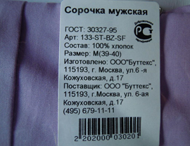Текстиль һәм тегү товарында, кагыйдә буларак, ярлыкларда җепселләрнең процент эчтәлеге турында мәгълүмат булырга тиеш.