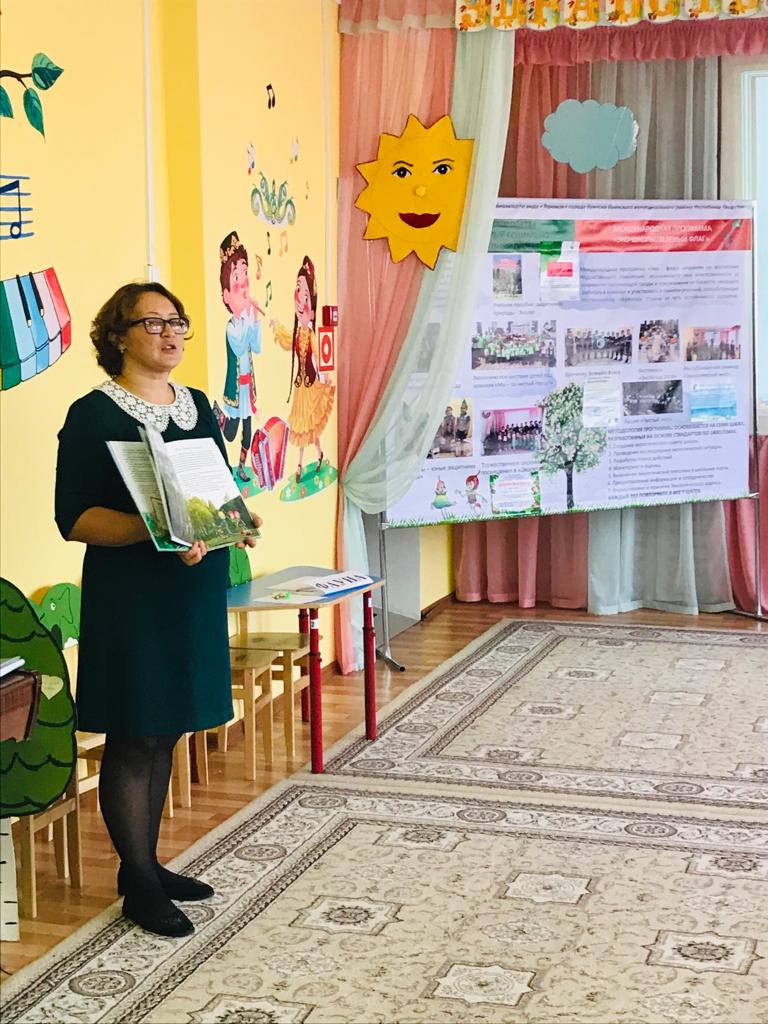 Әхмәт балалар бакчасы тәрбиячесе Гайсина А.К. педагоглар белән «Экология безнең белән янәшә»дигән темага эшлекле уен үткәрде. «Эко-мәктәп/Яшел флаг» Халыкара программасында катнашу тәҗрибәсе белән «Теремок» балалар бакчасы педагогы Шакирова Г. Д. уртаклашты.