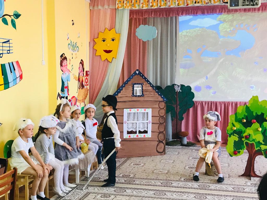 Хөрмәтле кунакларны-методик берләшмәдә катнашучыларны бик матур шигырьләр һәм җырлар белән каршы алдылар. Аннан соң зурлар һәм мәктәпкә әзерлек төркемнәре тәрбиячеләре белән берлектә, олы яшьтәге балалар әзерләгән «Алмалы капчык» экологик әкият дөньясына тиз арада чумдылар.