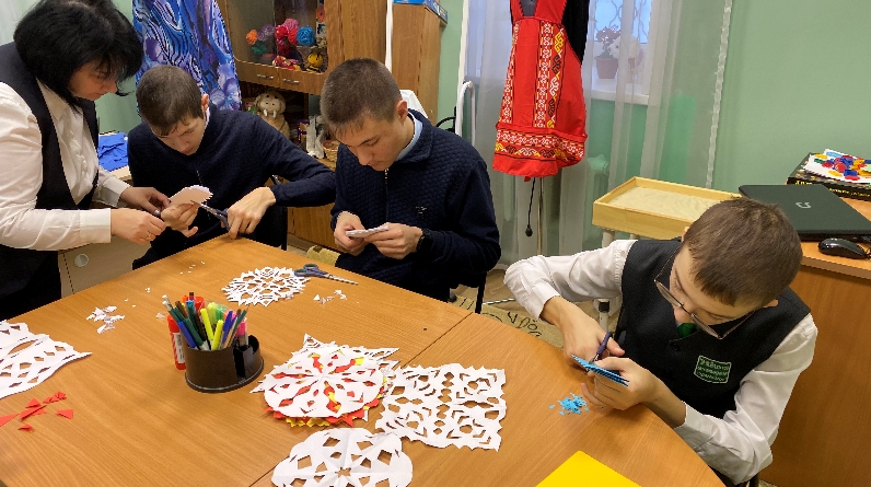 Әлеге максат белән белгечләр төрле төстәге кар бөртекләре ясау буенча мастер-класс үткәрделәр. Балалар зур кызыксыну һәм тырышлык белән эшләделәр.