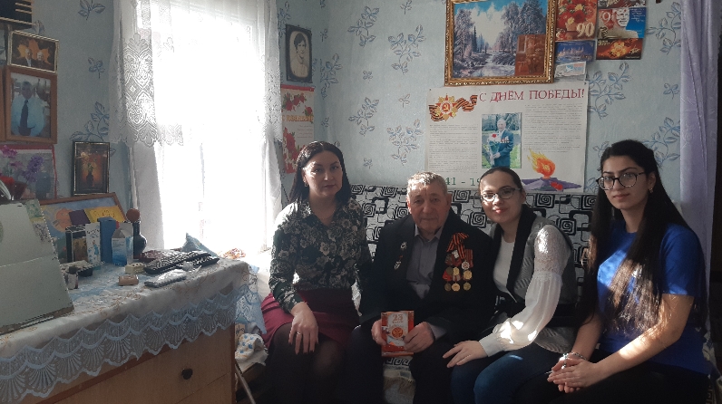 Буа муниципаль районының «Гармония» халыкка социаль хезмәт күрсәтү комплекслы үзәге социаль хезмәт күрсәтү бүлекчәсе белгечләре Буа ветеринария техникумының «Игелек-милосердие» отряды волонтерлары белән Ватанны саклаучылар көне алдыннан Бөек Ватан сугышы ветераны Панцырев Михаил Дмитриевичны Җиңү бәйрәме белән котладылар.