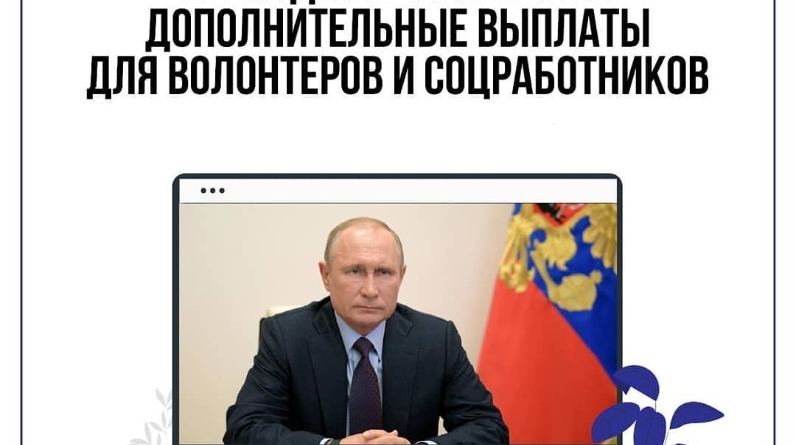 Волонтерлар, социаль хезмәткәрләр, коммерциячел булмаган оешмалар хезмәткәрләре һәм өлкәннәргә ярдәм итүче гади гражданнар дәүләттән акча алачак. Ярдәм чаралары 2020 елның 1 апреленнән 30 июненә кадәр инвалидлар, өлкән яшьтәге кешеләр, ятим балалар һәм ата-ана тәрбиясеннән мәхрүм калган балалар өчен вакытлыча яшәүгә алган яки опекага алу өчен каралган. Россия Хөкүмәте пандемия вакытында волонтерлык эшчәнлеге өчен махсус түләүләр өчен резерв фондыннан 145 млн. сум бүлеп биргән.