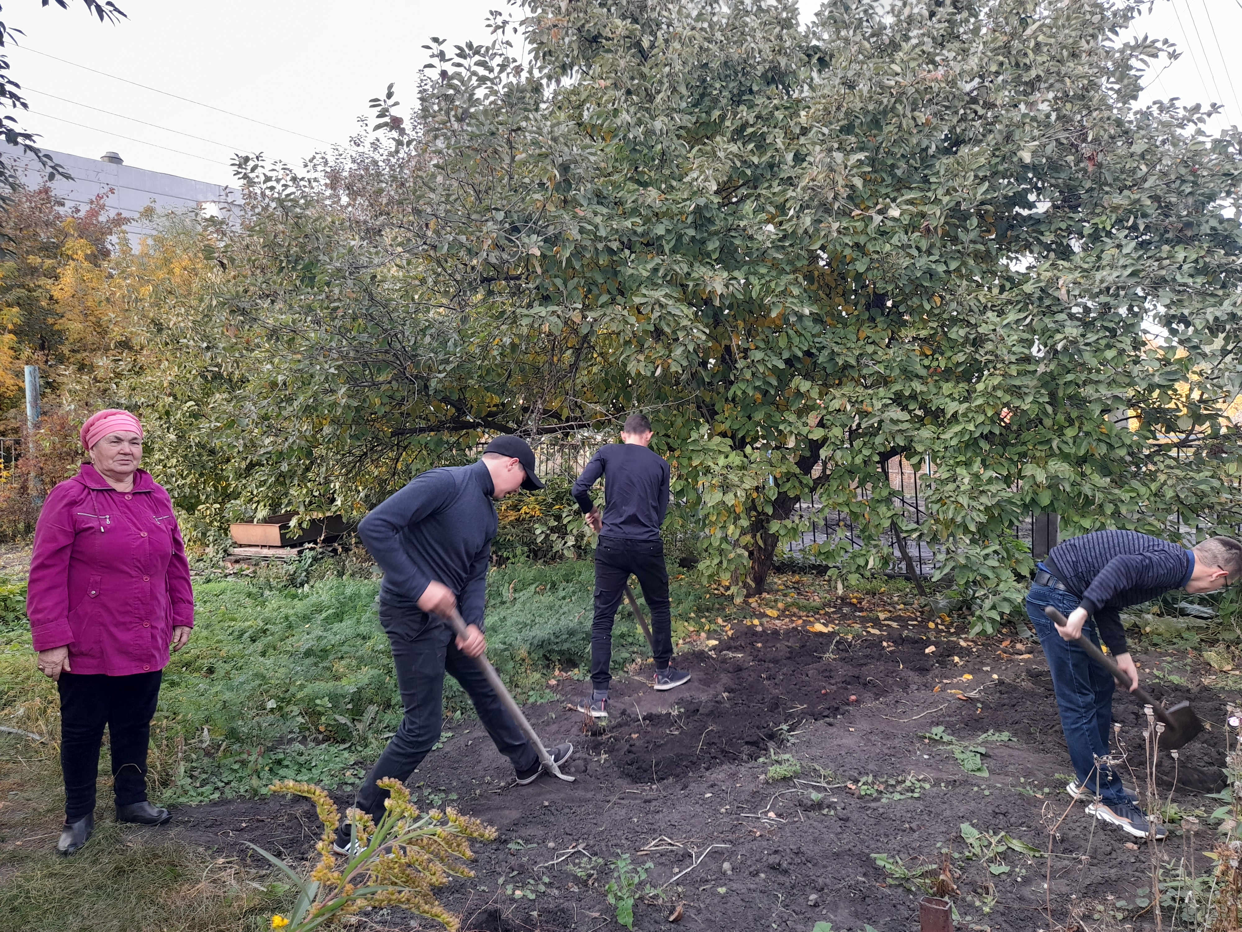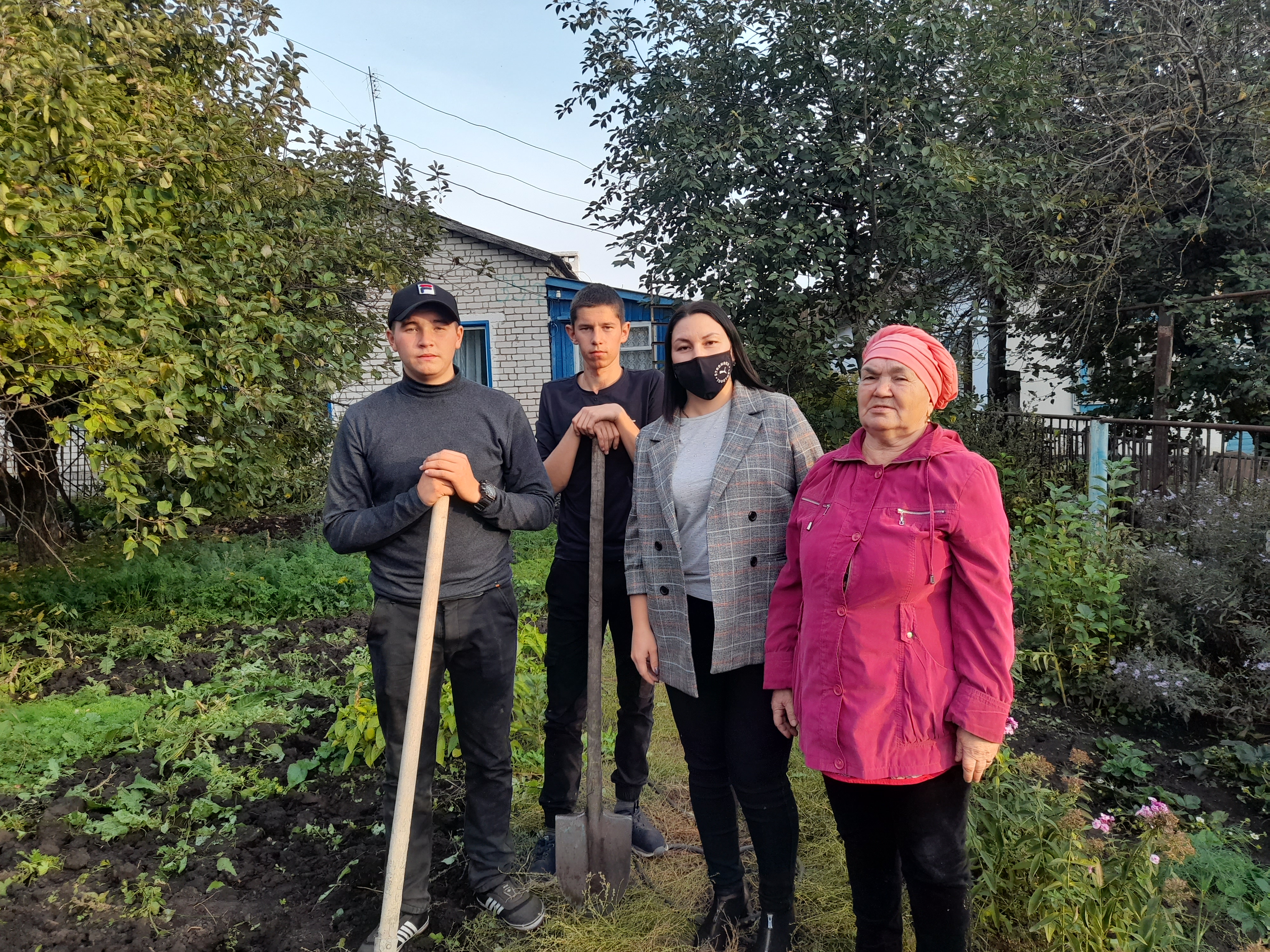 Волонтерлар көче белән өлкән яшьтәге гражданнарның яшәү урыны буенча йорт яны участогы территориясе җыештырылды һәм бакчалары казылды.