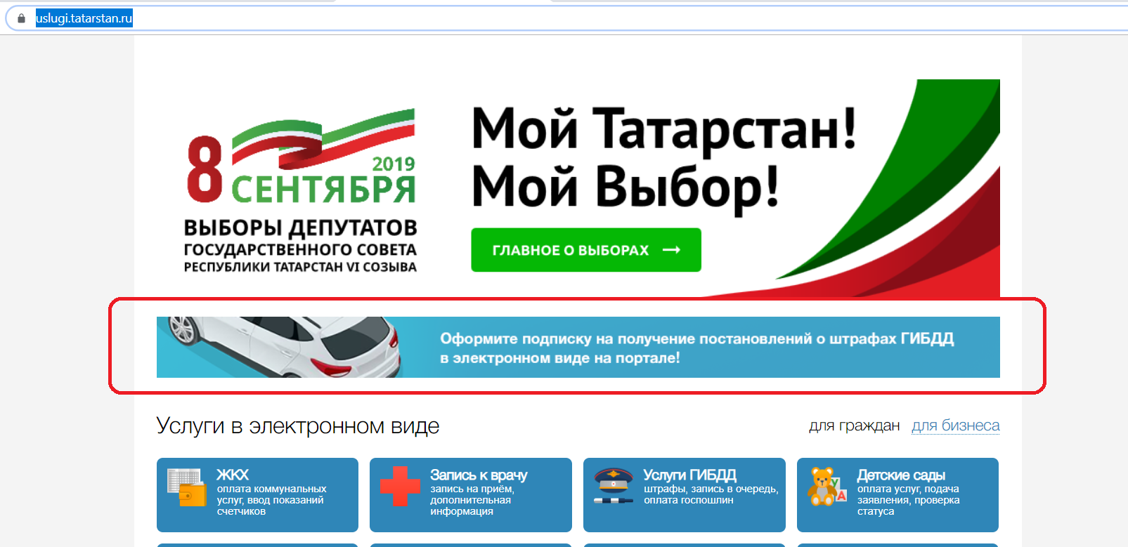 2. ТР Дәүләт һәм муниципаль хезмәтләр Порталында (Кызыл рамка белән бүлеп бирелгән) ЮХИДИ штрафлары турындагы карарларга электрон рәвештә язылуны рәсмиләштерү бүлегенә күчәргә һәм табарга