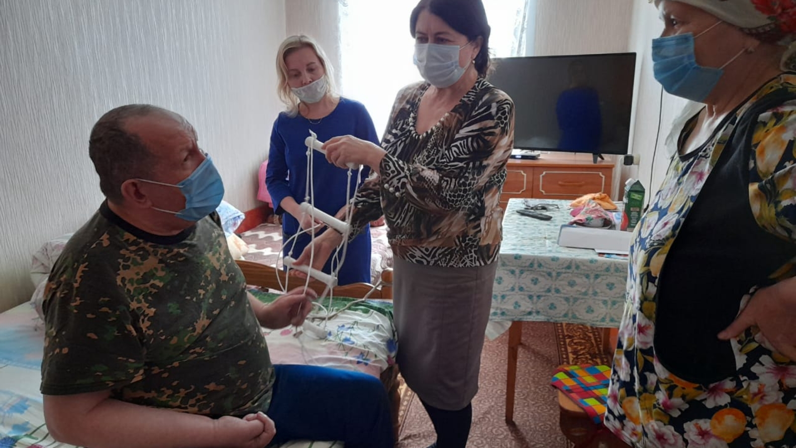 Чираттагы индивидуаль дәрестә белгечләр инсульт кичергән социаль хезмәтләр алучының хатынын тернәкләндерүнең техник чаралары яңалыклары белән таныштырдылар, аларның өй шартларында авыруларны тәрбияләүдә роле һәм әһәмияте турында сөйләделәр. Дәрес барышында бер гаилә утыргычка борылышлы мендәр (йомшак диск) һәм караватта күтәрелә башлау өчен баулы баскыч сатып алу теләген белдерде.