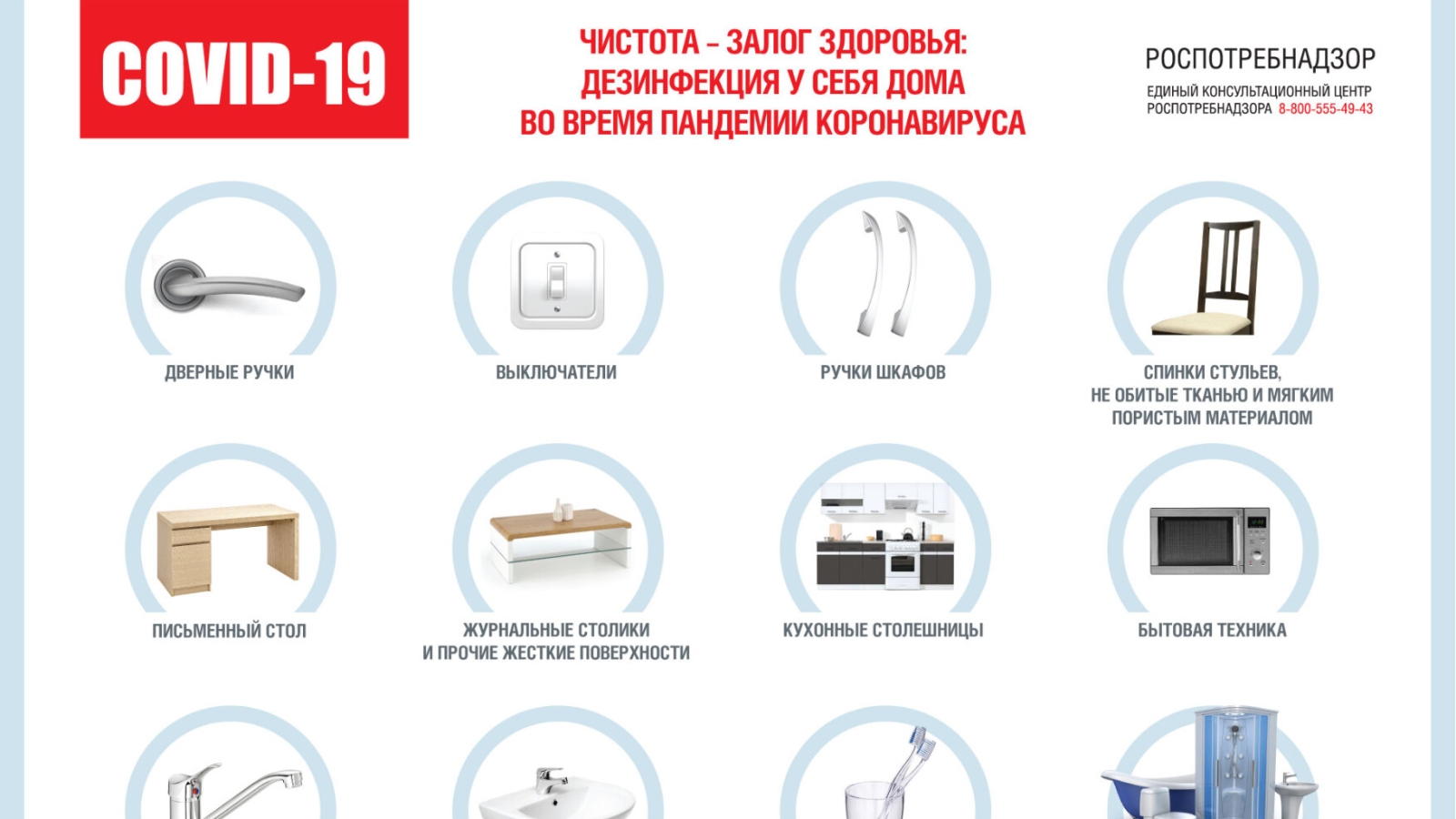 Мөһим: Өйдә яки фатирда дымлы җыештыруны, әгәр барысы да сәламәт булса, атнага ике-өч тапкыр көнкүреш химиясе чараларын кулланып башкарырга кирәк. Әгәр өйдә авыру кеше булса, юеш җыештыруларны көн саен хлорактив, кислородактив кушылмалар яки өсте-актив матдәләр нигезендә дезинфекция чараларын кулланып ясарга кирәк. Биналарны мөмкин кадәр еш җилләтергә тәкъдим ителә.