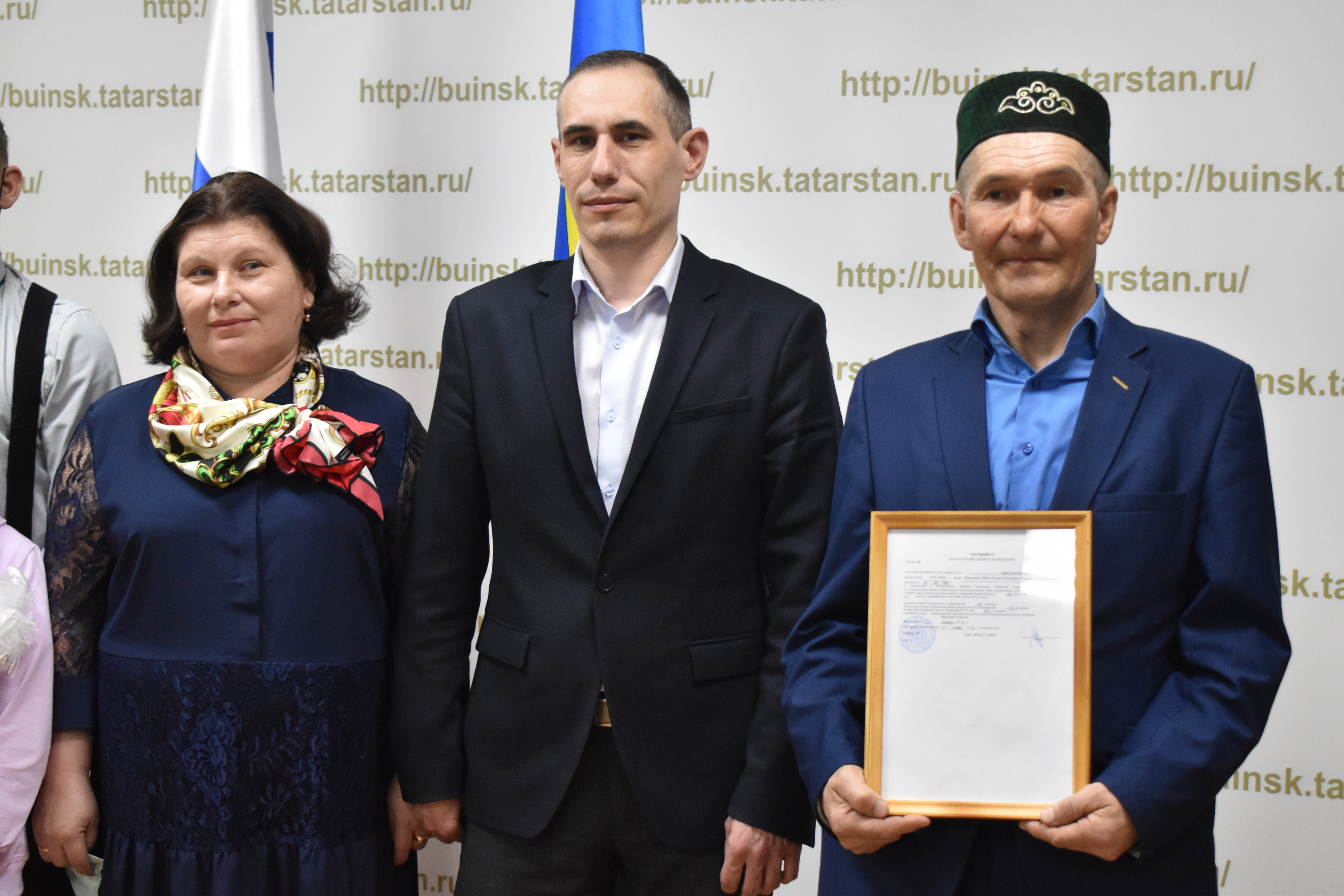 Буа муниципаль районы Башкарма комитетының утырышлар залында күп балалы гаиләгә торак сертификаты тапшыру тантанасы булды. Аны Буа районы Иске Тинчәле авылыннан Рәим һәм Лилия Сафиннар Буа муниципаль районы Башкарма комитеты җитәкчесе вазыйфаларын башкаручы Ленар Шакирҗанов кулыннан алдылар:
