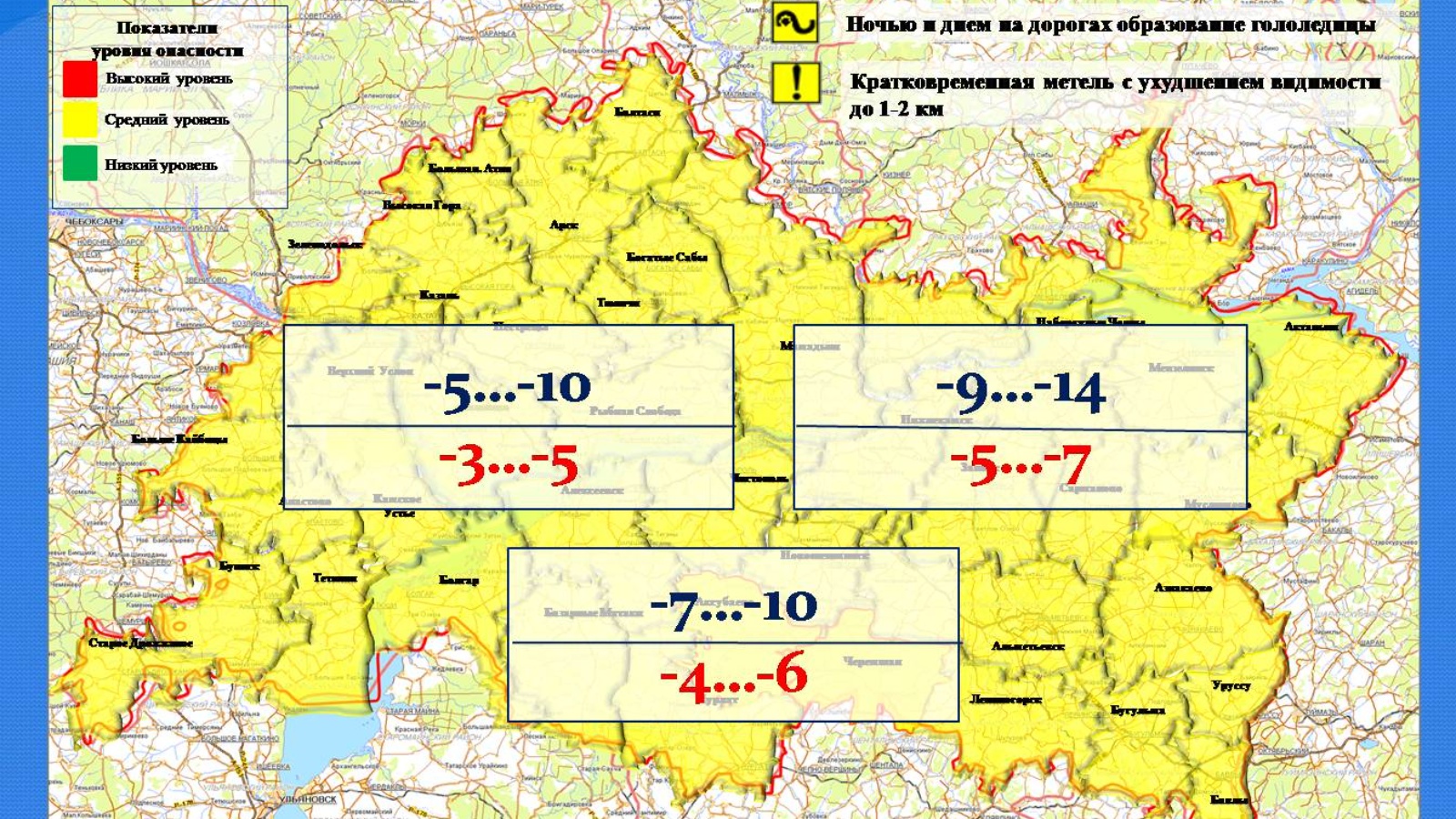 Минималь һава температурасы төнлә һәм иртән -6..-8˚.