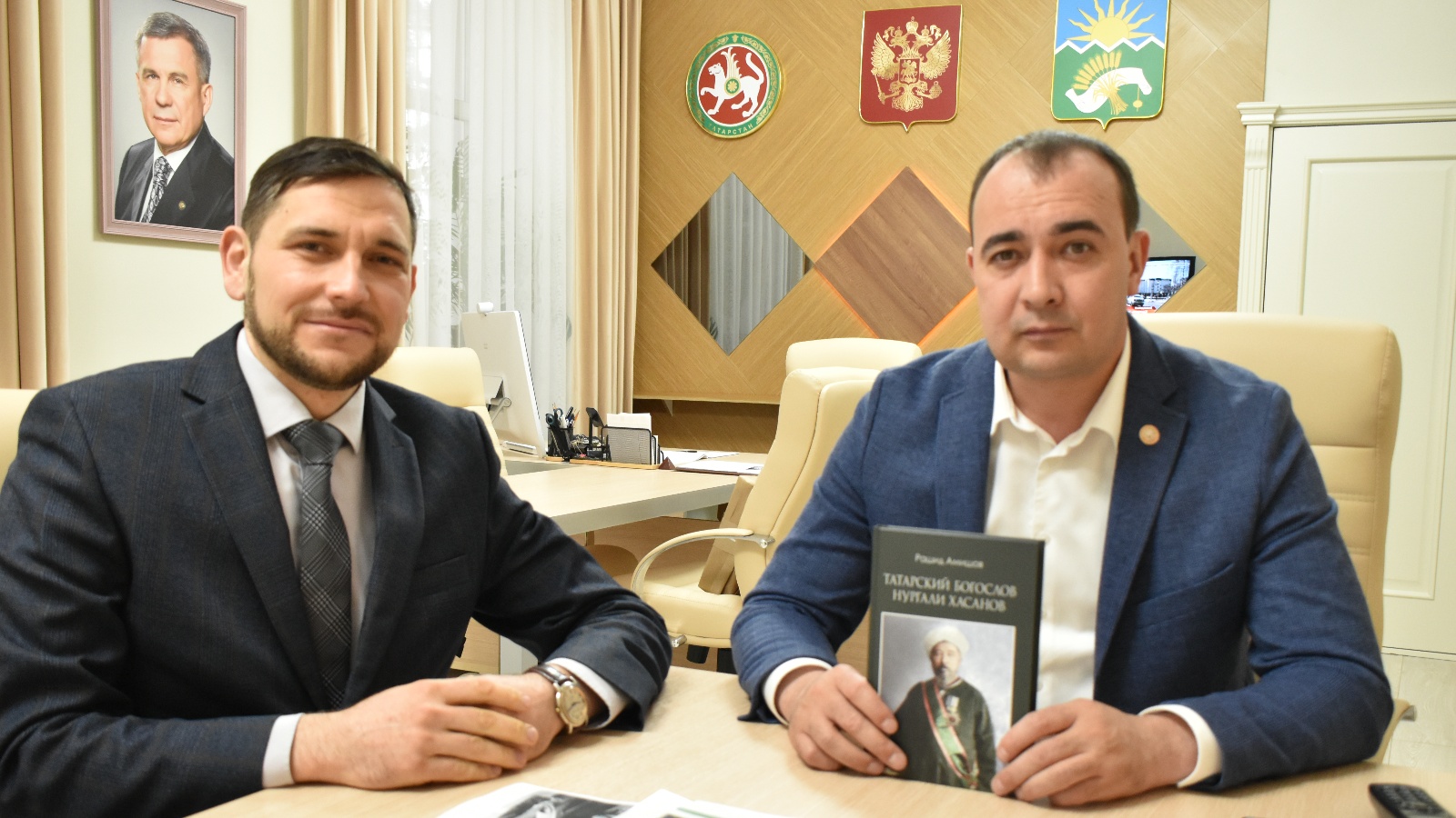 Ранис Камартдинов "Татар дин белгече Нургали Хәсәнов" китабын оештыру һәм үткәрү мәсьәләләре буенча фикер алышу буенча Рәшит Ильяс улы белән очрашты.