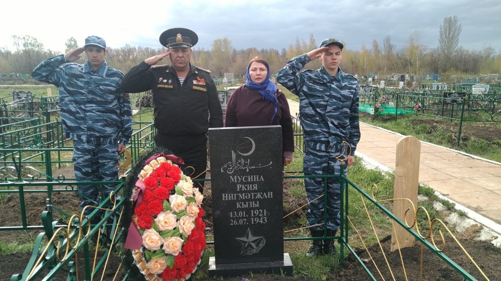 Башкарма комитет җитәкчесенең социаль мәсьәләләр буенча урынбасары Лилия Садретдинова һәм Буа һәм Чүпрәле районнарының хәрби комиссары Радик Төхфәтуллин Дан ордены тулы кавалеры Зыятдин Арусланов, Ркия Мусина, Хәбибулла Шиһаповның каберләренә чәчәкләр салдылар, аларны бер минутлык тынлык белән искә алдылар.