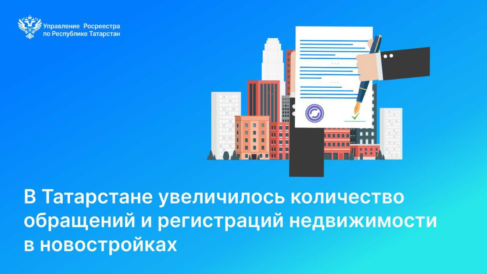 Агымдагы елда Татарстан Росреестрына өлешләп төзелештә катнашу шартнамәләрен теркәү өчен якынча 22,3 мең гариза керде. Шул ук вакытта электрон рәвештә бирелгән гаризалар өлеше 90% тан артык тәшкил иткән.