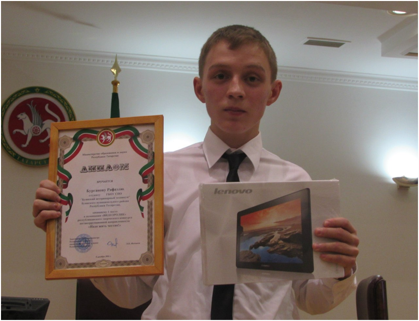 Буа ветеринария техникумының II курс студенты Рафаэль Борһанов “Коррупциягә каршы закон сагында” республика видеороликлар конкурсында беренче урынны алды.