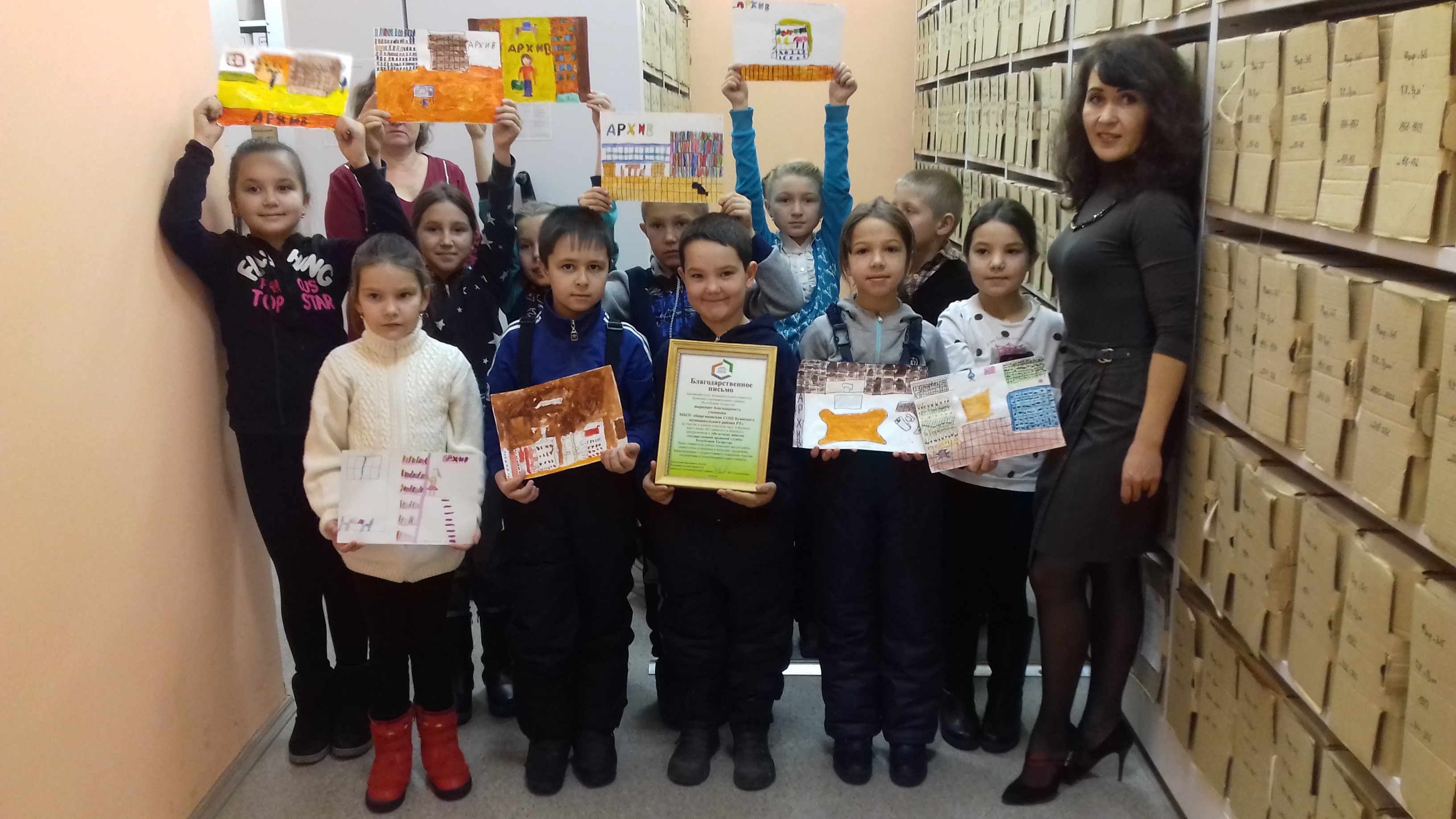 Сегодня, 30 ноября в архивный отдел Исполнительного комитета Буинского муниципального района на классный час вновь заглянули учащиеся. В этот раз приехали ученики МБОУ «Бюргановская СОШ Буинского муниципального района». Для них была организована экскурсия, в ходе которой ребята познакомились с историей муниципального архива и основными принципами организации хранения архивных документов. В завершение мероприятия специалисты отдела предложили юным бюргановцам принять участие в игре по поиску необходимого документа. В награду за ответственность и проявленную смекалку дети получили «Благодарственное письмо» от архивного отдела. В ответ ребята со словами благодарности за отлично проведенное время подарили архиву свои рисунки «Архив глазами детей».